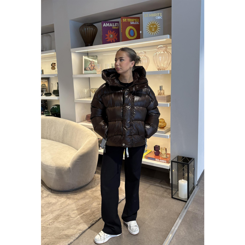 Debbie fra C.A.Y.A er en kort og oversized dunjakke. Jakken har en stor avtakbar hette og kule detaljer som splitt