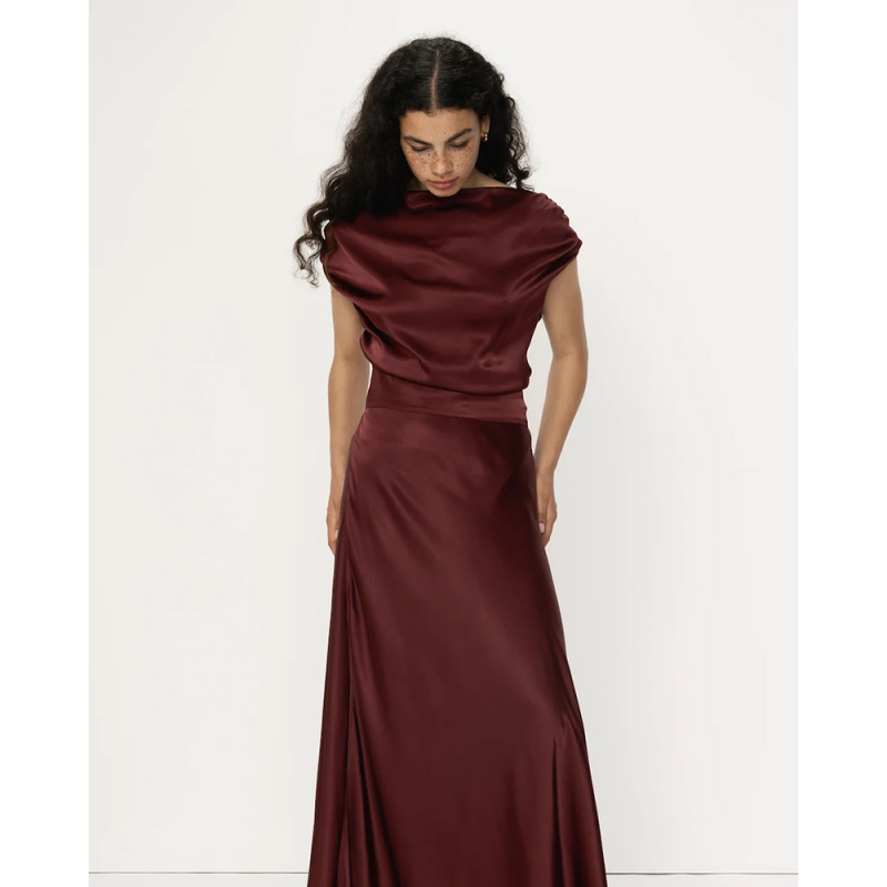 VIVEH Columbine-kjolen er en asymmetrisk maxi-kjole som sitter rundt midjen og hoftene, og har en drapert og avslappet passform øverst.