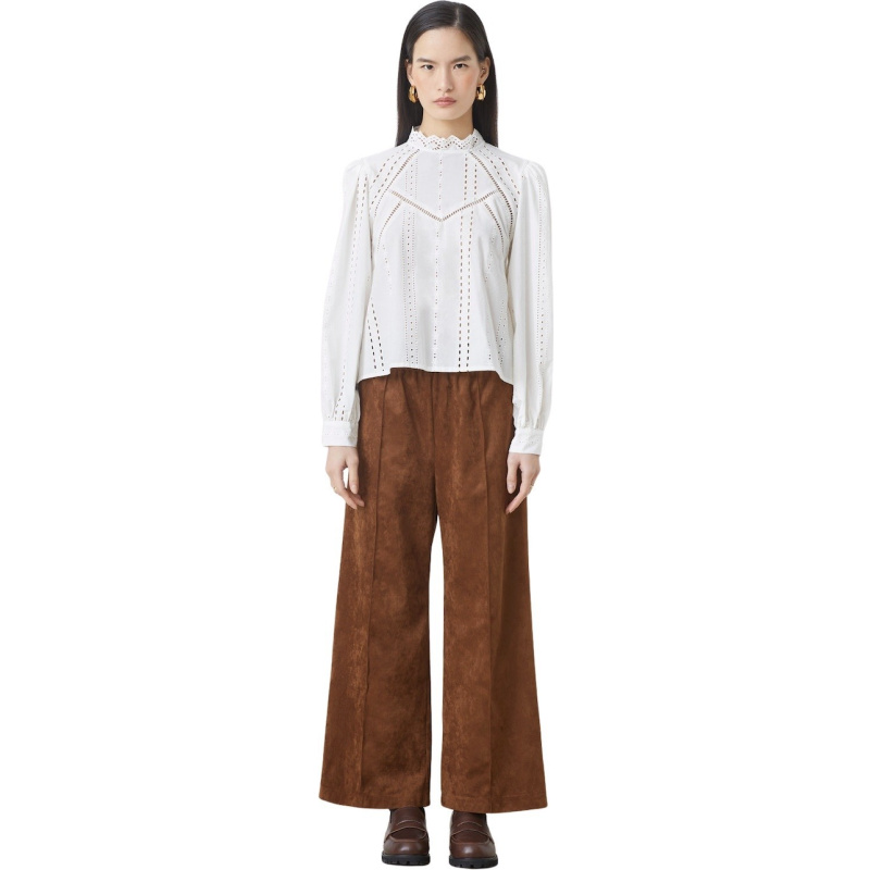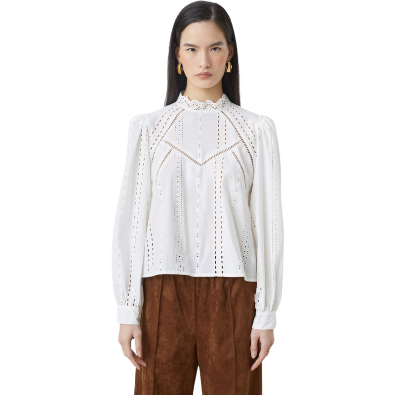 Lais er en bluse i økologisk bomull med romatiske detaljer i engelsk blonde fra Suncoo. Blusen har høy hals med