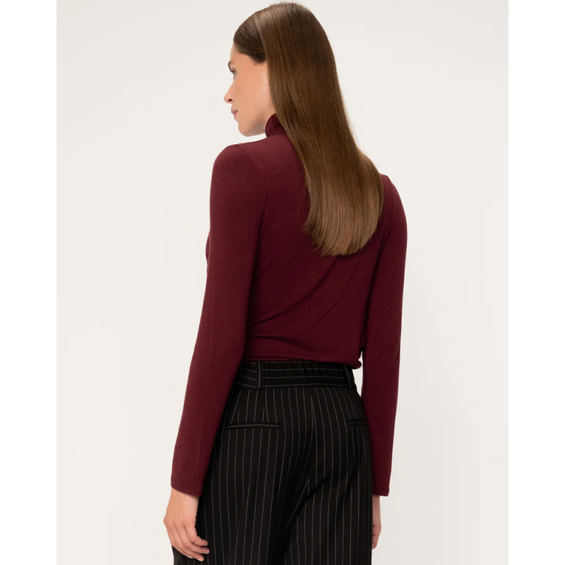 Alcor er en figurnær pologenser med elegante draperinger over brystet. Genseren er laget i en myk og elastisk viskose-ullblanding som