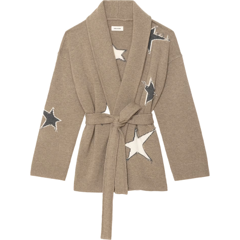 Alpa Coat. Alpa Coat fra Zadig & Voltaire er en mellomlang cardigan-kåpe i 100 % kasjmir med intarsia-strikket stjernemønster. Jakken