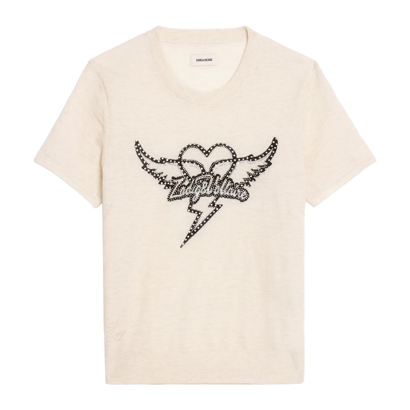 T-skjorte i 100 % bomull med rund hals fra Zadig & Voltaire. Dekorativ brodert med perlede vinger. Materiale: 100% bomull