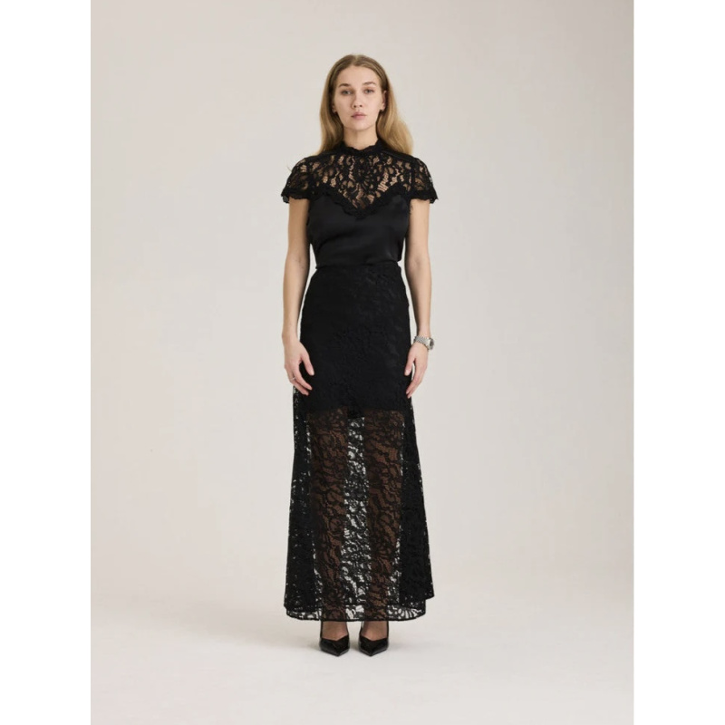 Sage Skirt fra RAVN RAVN er et vakkert maxiskjørt i blonder. Skjørtet har romatiske blondedetaljer med et kort heldekkende underskjørt.