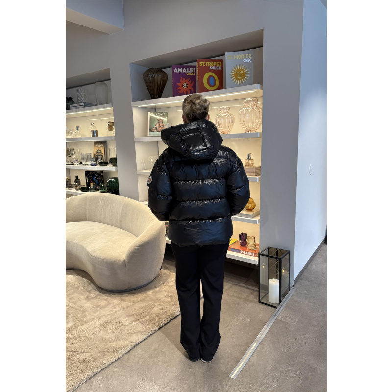 Ginny Short er en kort dunjakke med unike detaljer. Den har stikklommer i sidene med glidelås, splitt med glidelås, og