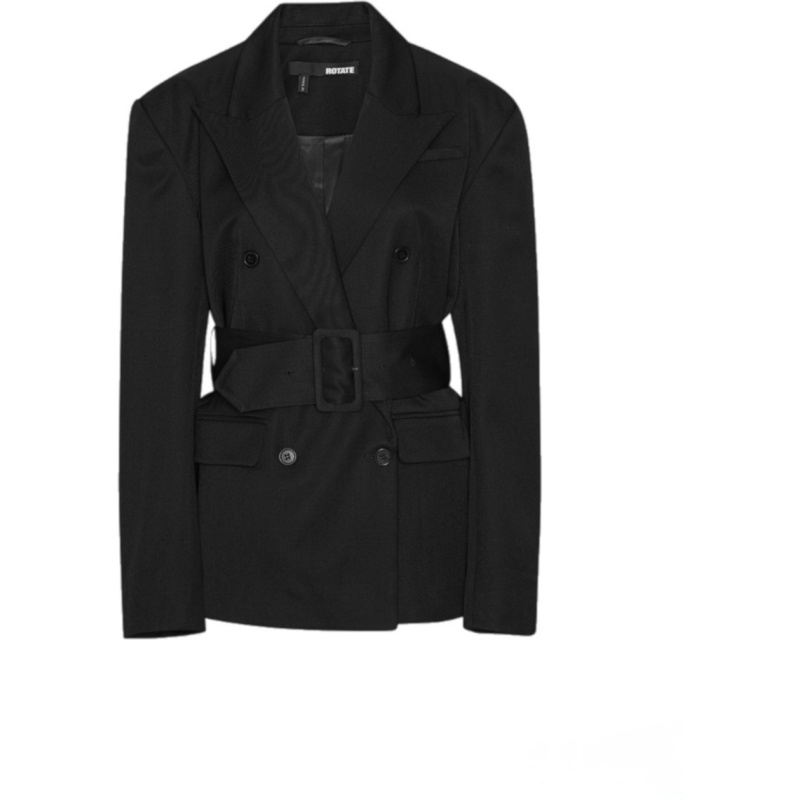 Belted Blazer. Belted Blazer fra Rotate er en dobbelspent blazer i oversized design. Blazeren har markerte skuldre med skulderputer og