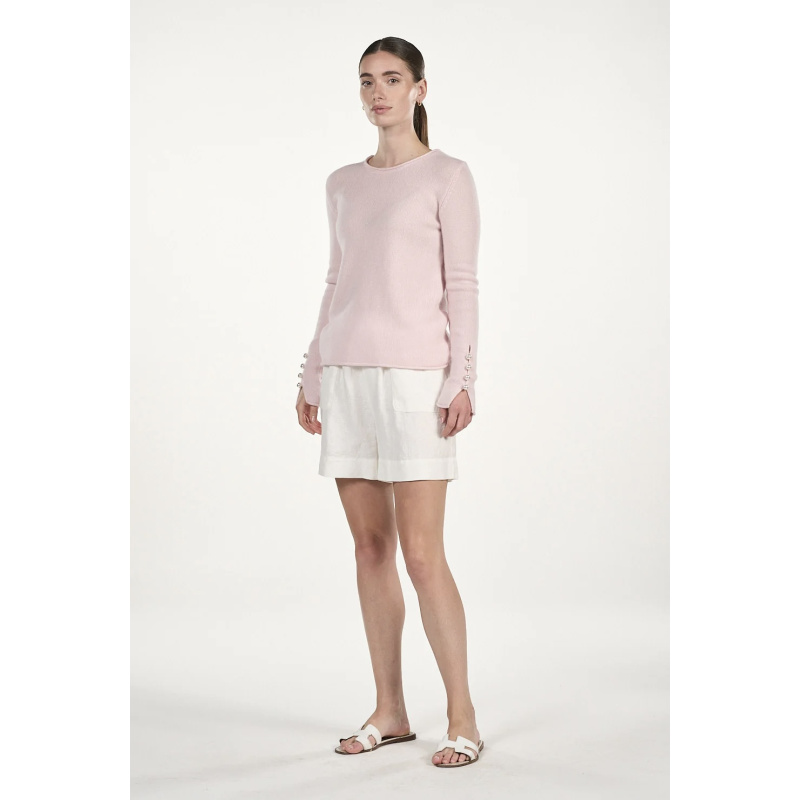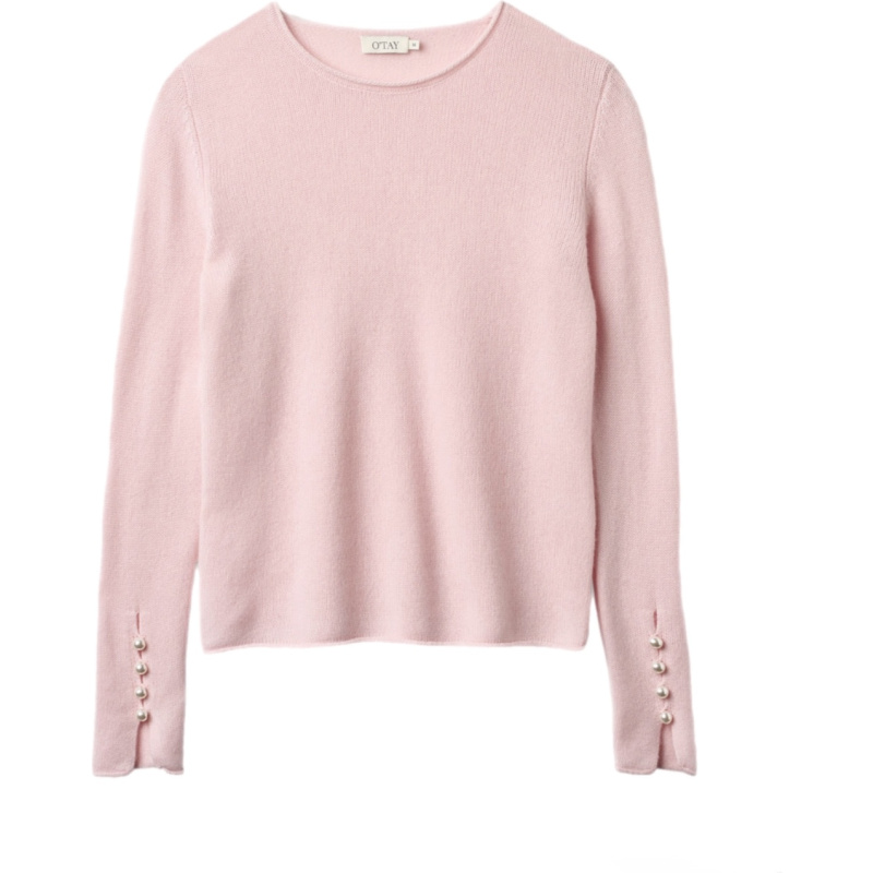 Abbelone fra O’Tay. Nydelig genser i 100% kasjmir. Genseren har rund hals og ermene er dekorert med fire perleknapper. En