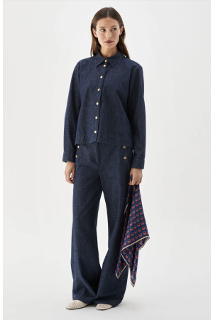 Poppy Denim Shirt. Poppy Denim Shirt fra Busnel er en feminin og forseggjort skjorte laget i myk denim. Den har