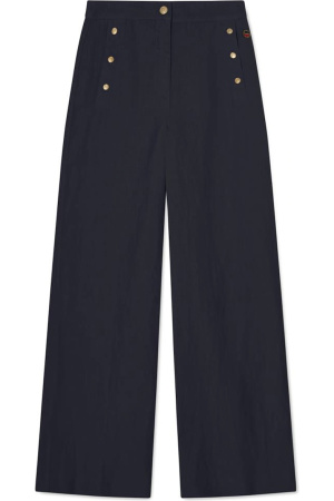 Pim Trousers. Pim Trousers fra Busnel er en wideleg bukse i 100% bomull. Buksen er mid-waist, dekorert med tre gullknapper