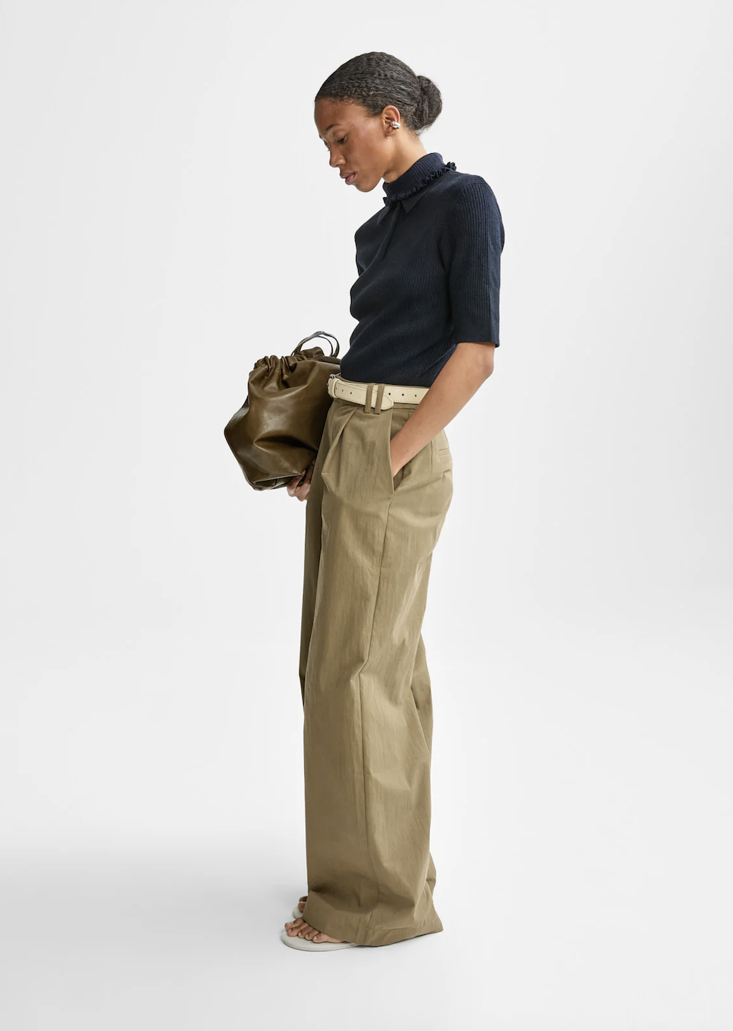 Sharon Linen Trouser. Sharon Linen Trouser fra AKS er en vid bukse med legg foran og pressede folder både foran