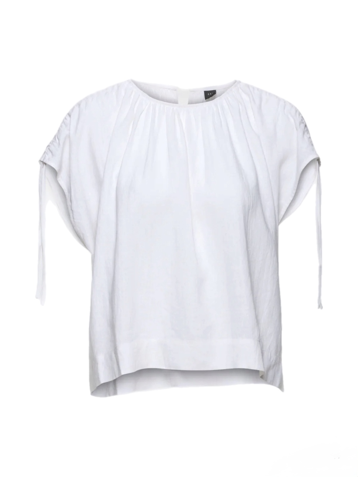 Gali Linen Top. Gali Linen Top fra AKS er en stilren, vid lintopp med skulderstropper som kan strammes for korte ermer eller løsnes for å dekke skuldrene. Den har en lukking med perledetalj midt bak i nakken for et raffinert uttrykk.