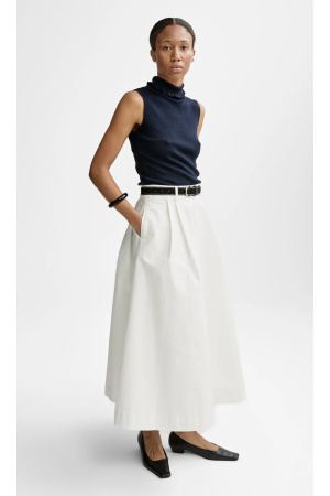 Anna Cotton Skirt. Anna Cotton Skirt fra AKS er et ankellangt volumiøst bomullskjørt vevd i en sprø og skulpturell kvalitet.