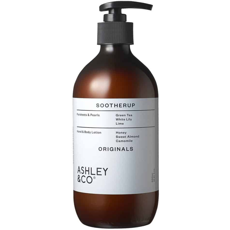 Lotion med sheasmør, kamille og naturlige ekstrakter som kan brukes på både hender og kropp.