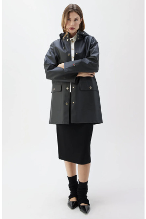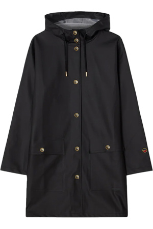 Britte Raincoat fra Busnel holder deg tørr på regnværsdager. Jakken har sveisede sømmer, rett silhuett, hette med snor, og ventilasjonsmaljer