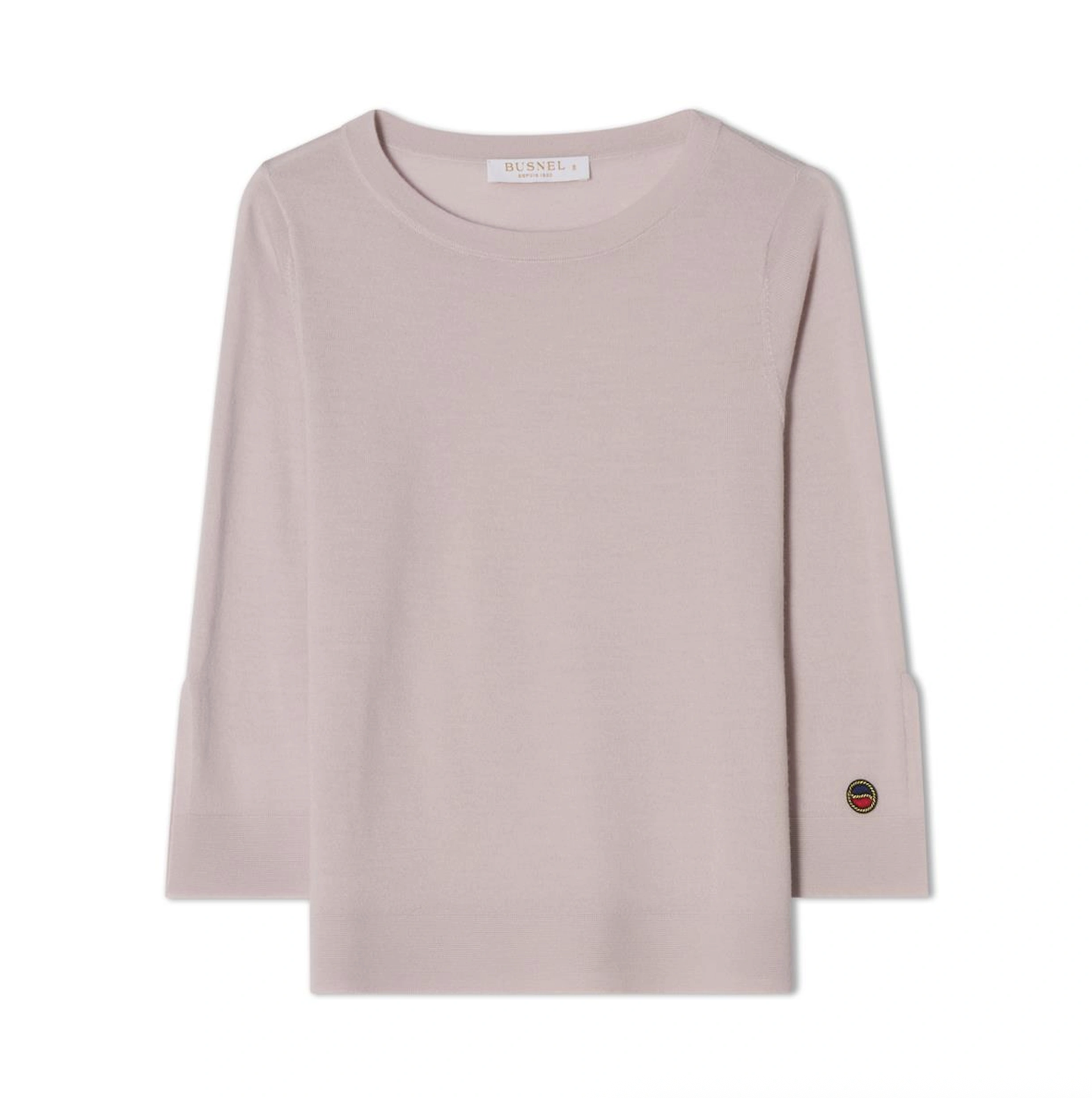 Ocean Top. Ocean Top fra Busnel er en elegant og tidløs genser laget i en tynn og eksklusiv merinoull. Genseren har rund hals og 3/4 ermer med en delikat splitt. Kommer i en delikat dus rosafarge som gir den et mykt og sofistikert uttrykk.