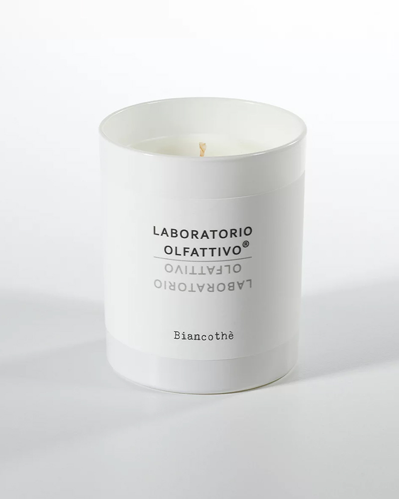 Duftlys fra Laboratorio Olfattivo som er laget av en blanding av voks med veke sammensatt av 100% ren bomull.