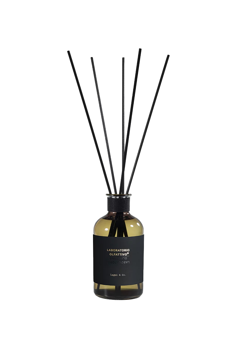 Diffuser i en varm og treaktig duft med innslag av sitrus, krydder og florale toner. Diffuseren skaper en balansert og innbydende atmosfære med en diskret intensitet som gir rommet karakter med maskuline innslag.