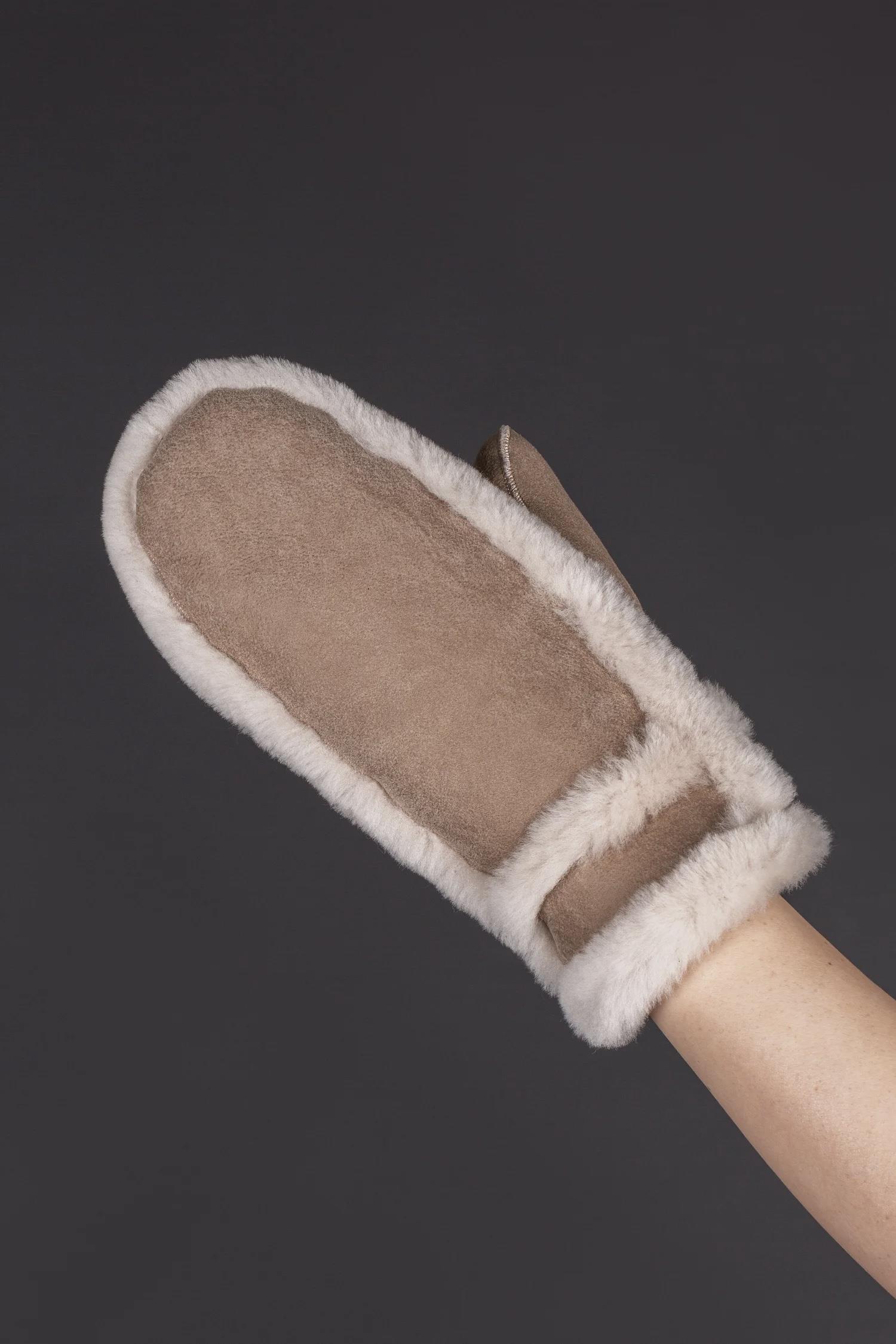 Votter i mouton lam fra Møller Pels. Gode og myke votter i beige og offwhite.