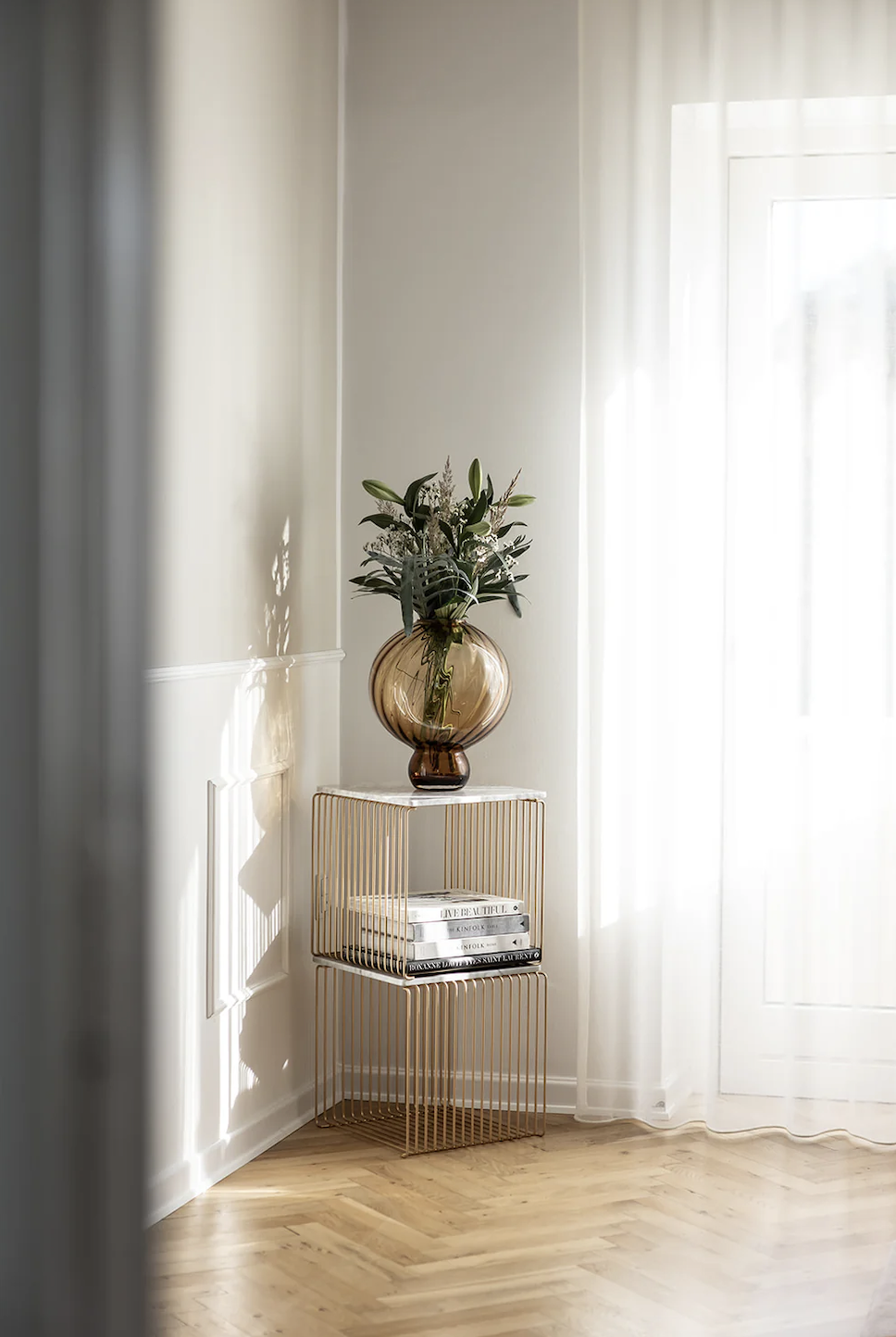 Meadow-vasen er med sin geometriske og moderne form designet for å kunne være et sentralt designelement i hjemmet hele året. Hele serien er produsert i Europa, hvor gamle tradisjonelle håndverksteknikker benyttes.