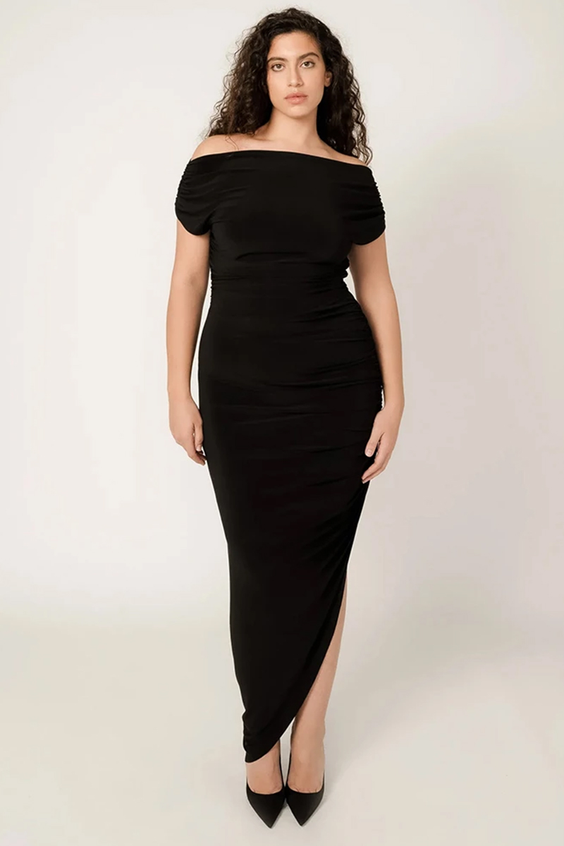 VIVEH Columbine-kjolen er en asymmetrisk maxi-kjole som sitter rundt midjen og hoftene, og har en drapert og avslappet passform øverst. Den brede båthalsen tilbyr flere stylingsalternativer, slik at du kan bruke den enten på eller utenfor skulderen. Samlede skuldre og sidesømmer skaper elegante gardiner over hele kroppen, noe som resulterer i en elegant design som fremhever kurvene og konturene dine. Kjolen er laget av mikropolyester, og er rynkebestandig, lett og tilbyr eksepsjonell stretch for ekstra komfort.