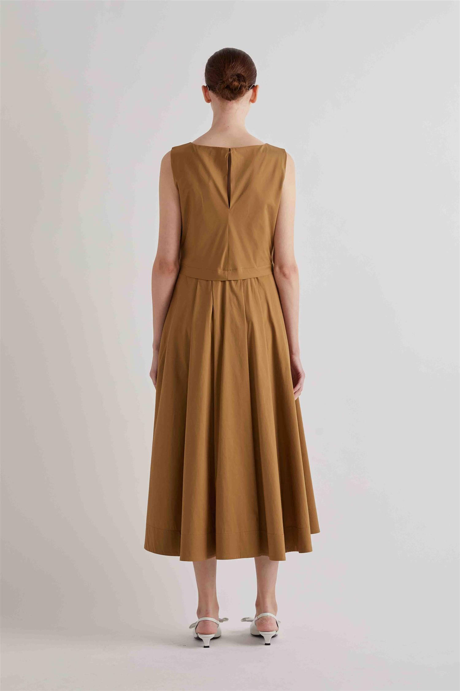 M6PB01 Dress fra Meimeij er en klassisk kjole med rund hals og foldedetaljer. Kjolen har en a-fasong hvor midjen blir markert av et knytebelte. Nøkkelhulls detalj bak i ryggen hvor kjolen lukkes av en knapp. Finnes i en vakker camel-farge og i svart.