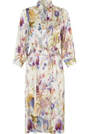 Langermede kjole fra ravn med dyp utringet rygg. Kommer i et vakkert blomsterprint i en viskoseog rayon blanding. Drapert passform.