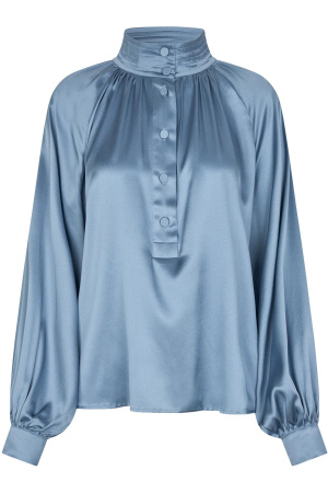 Denimbluse fra Suncoo. Løs passform med rysjedetaljer og puffermer. Blusen har lange ermer med knapp på mansjettene. Materiale: 90% bomull,