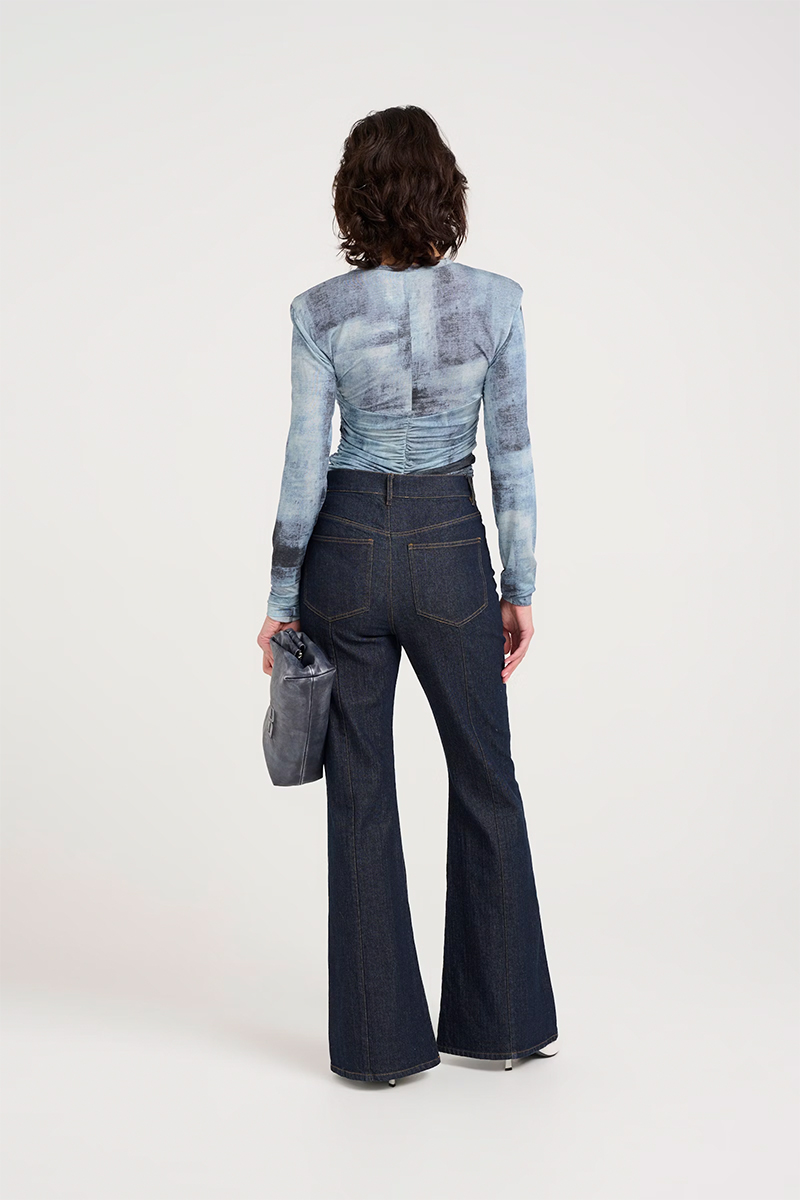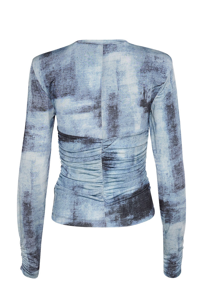 VIVEH Ruta-toppen har en litt mer avslappet passform rundt skuldrene og en bred, hengende utringning, som skaper en elegant drapering over brystet. Den kan