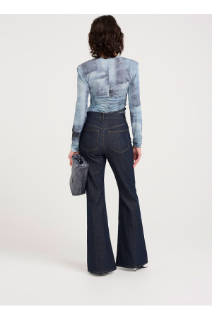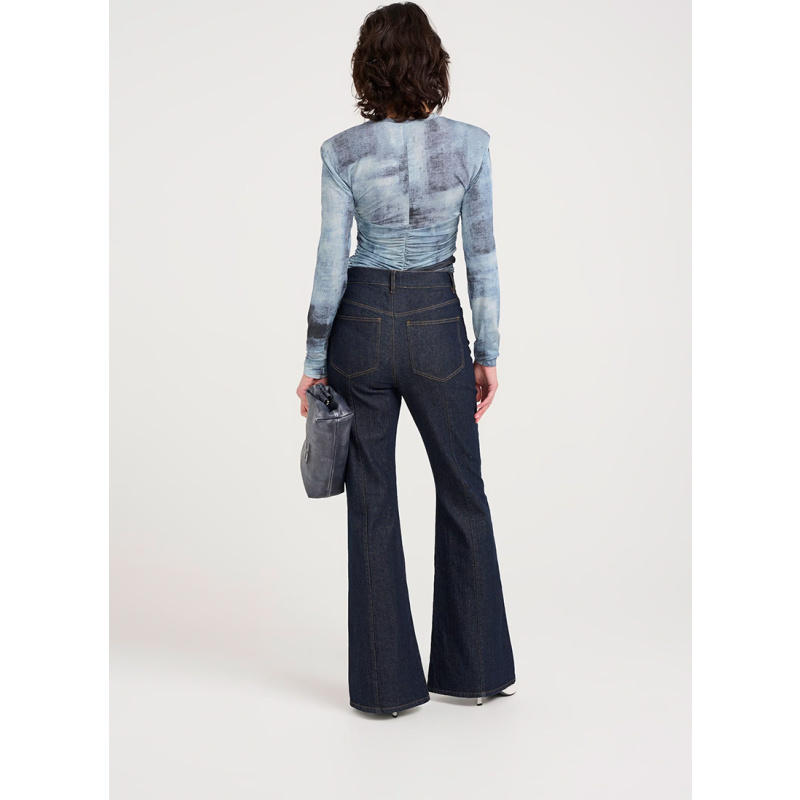 Denimbluse fra Suncoo. Løs passform med rysjedetaljer og puffermer. Blusen har lange ermer med knapp på mansjettene. Materiale: 90% bomull,