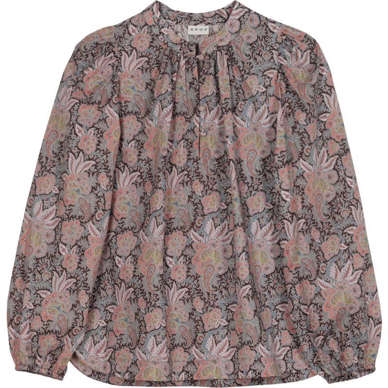 Audrey Shirt kommer i Libertys iøynefallende Kaleidoscopic-print. Skjorten er laget av lett bomull og har en avslappet passform med delikate rynkedetaljer ved hals og mansjetter, som gir en myk og feminin silhuett.