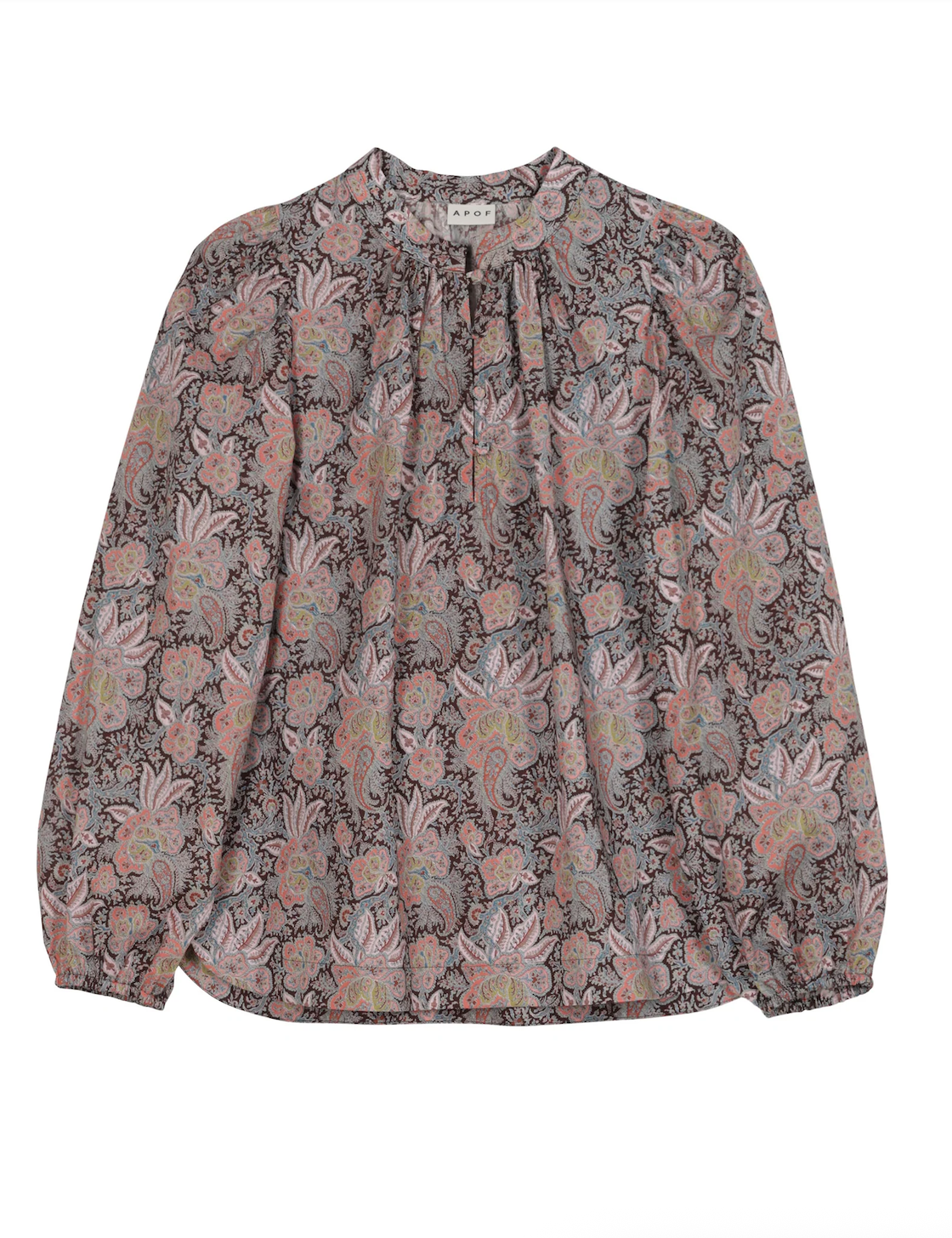 VIVEH Clover-blusen er en løstsittende design med en halvbeskåret silhuett og brede, voluminøse ermer, inspirert av VIVEH Viola-blusen, men nå