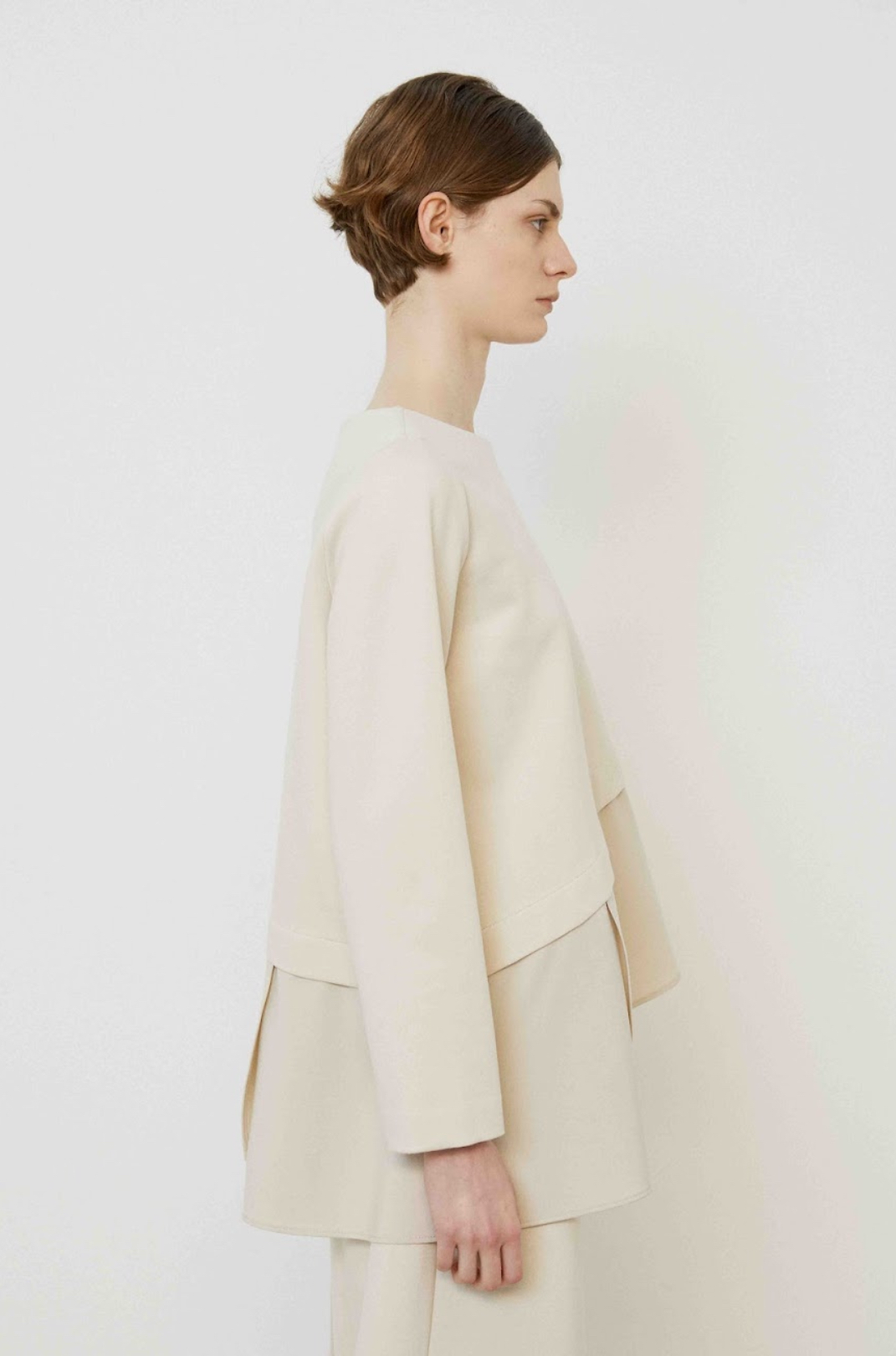 VIVEH Ruta-toppen har en litt mer avslappet passform rundt skuldrene og en bred, hengende utringning, som skaper en elegant drapering over brystet. Den kan