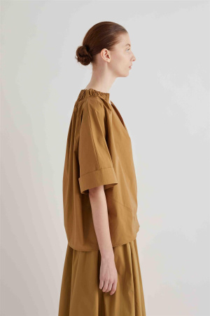 Shaula er en omslagsbluse laget i lett bomullspoplin med stretch. Løs og cropped passform gir blusen en avslappet og flatterende