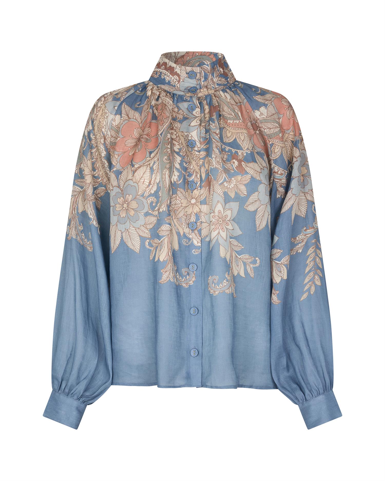 Denimbluse fra Suncoo. Løs passform med rysjedetaljer og puffermer. Blusen har lange ermer med knapp på mansjettene. Materiale: 90% bomull,