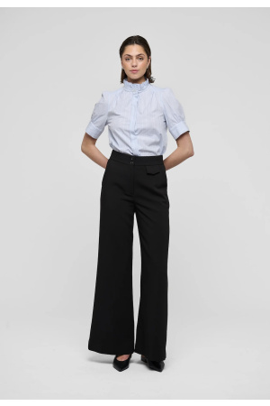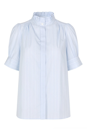 Roberta Shirt. Roberta Shirt fra Dea Kudibal er en sofistikert kortermet bluse i lyseblå, stripet poplin. Blusen har to volanger