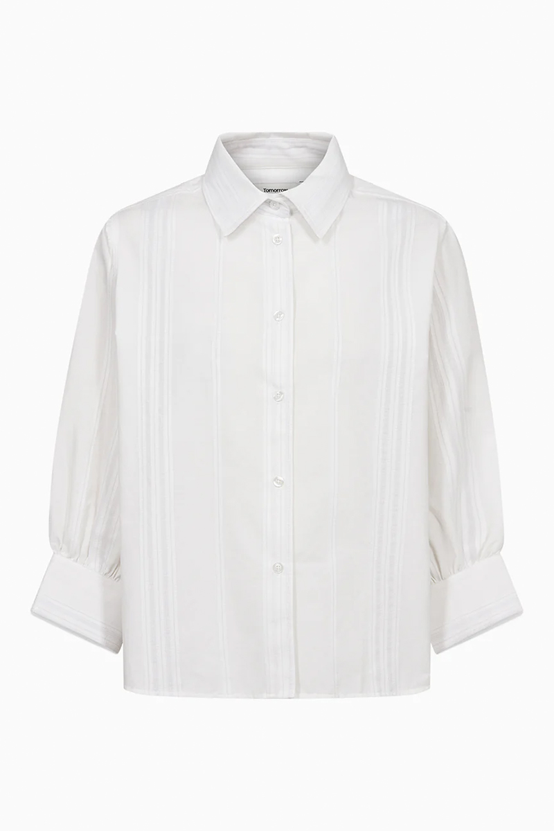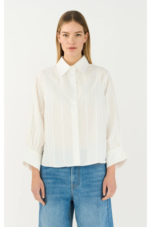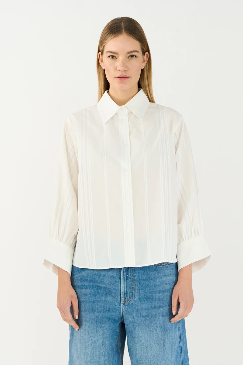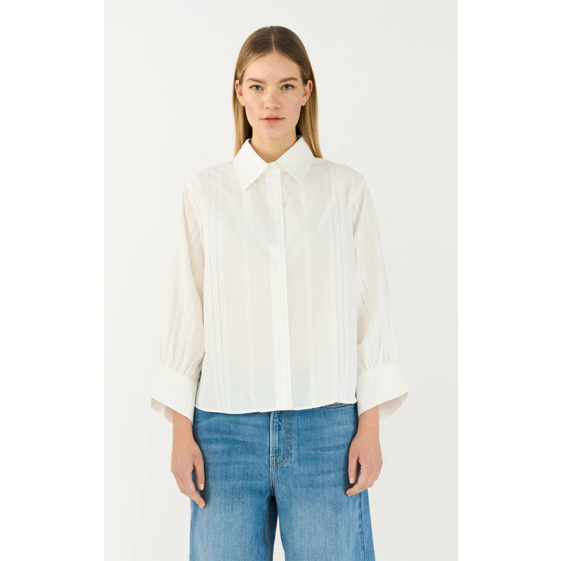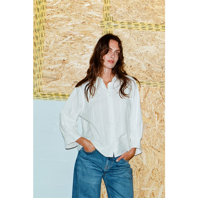 New Hepburn 3/4 shirt har en løs passform og litt kortere lengde, uten at den er cropped. Materiale: 100% bomull