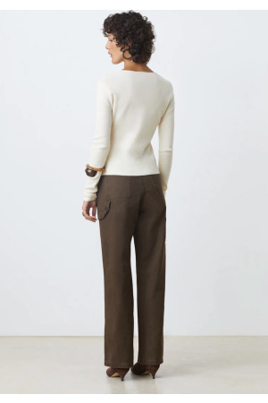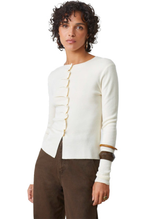 Cardigan fra Suncoo Paris. En elegant og sofistikert cardigan i myk, kremhvit ullblanding. Den har en flatterende tett passform og