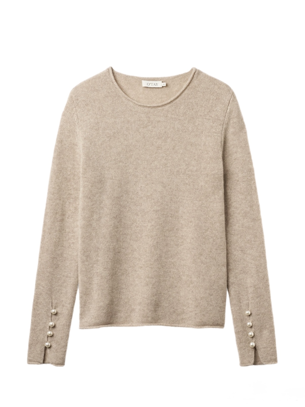 Langermet ecru genser i 100 % kashmir med trakthals og mansjetter med knapper med diamant-stjernejuveler. – Flake ecru genser i