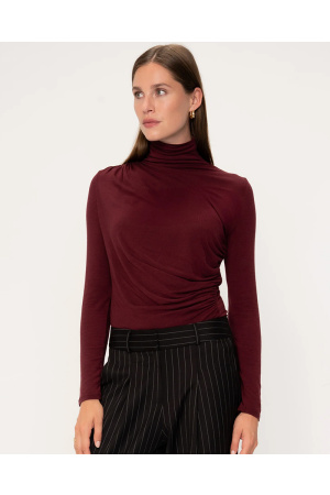 Alcor er en figurnær pologenser med elegante draperinger over brystet. Genseren er laget i en myk og elastisk viskose-ullblanding som