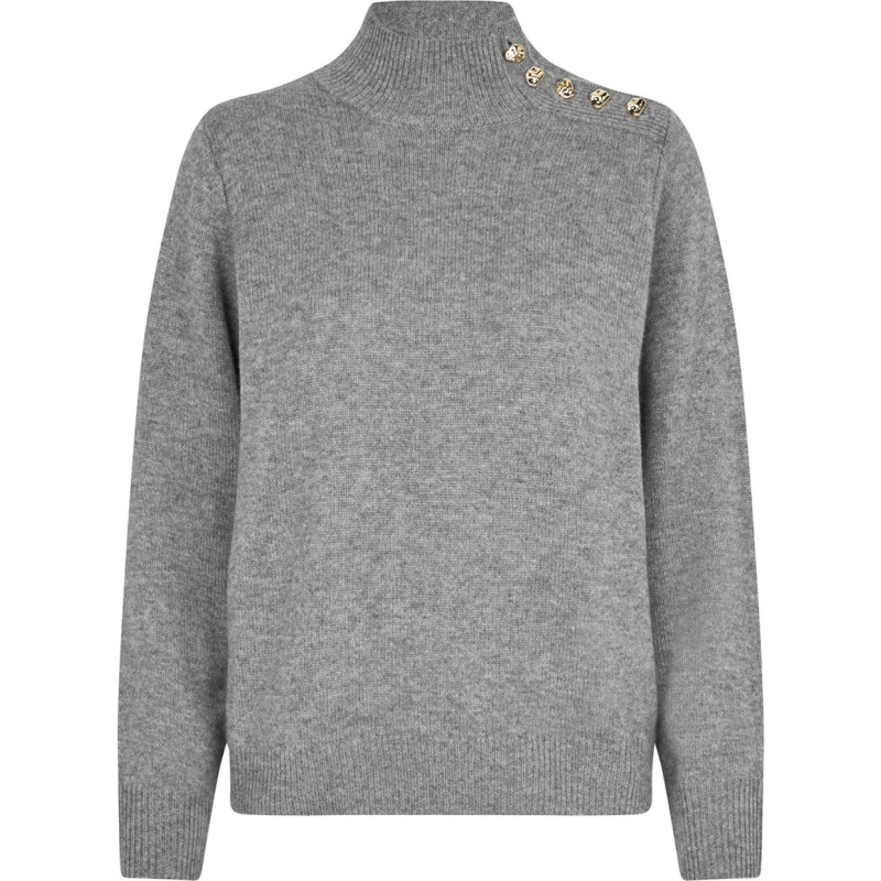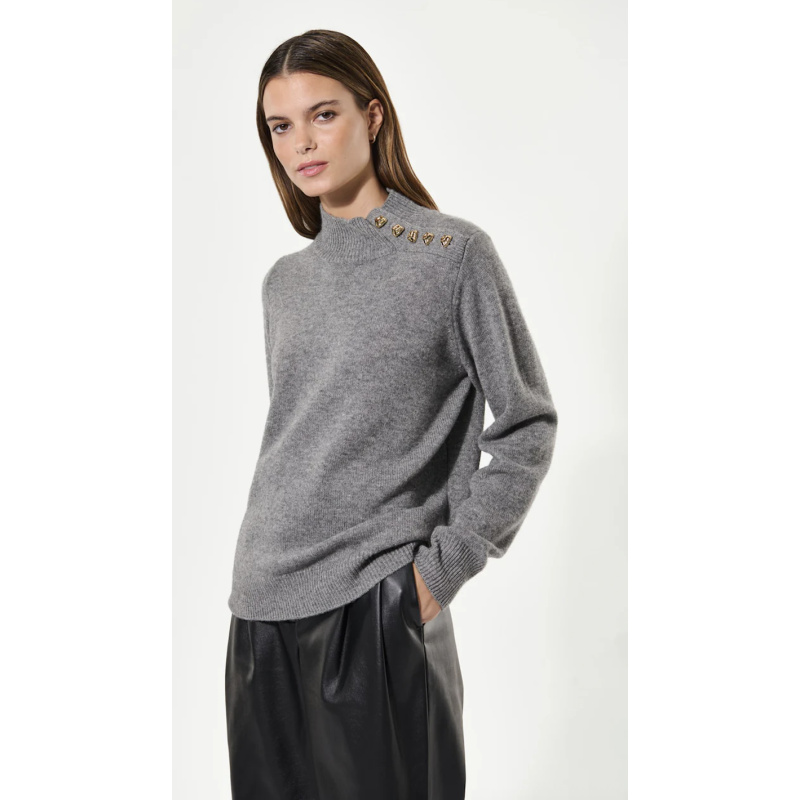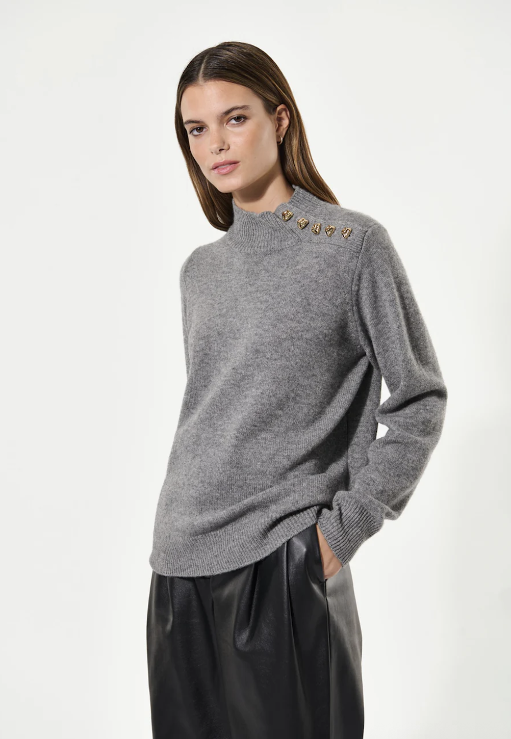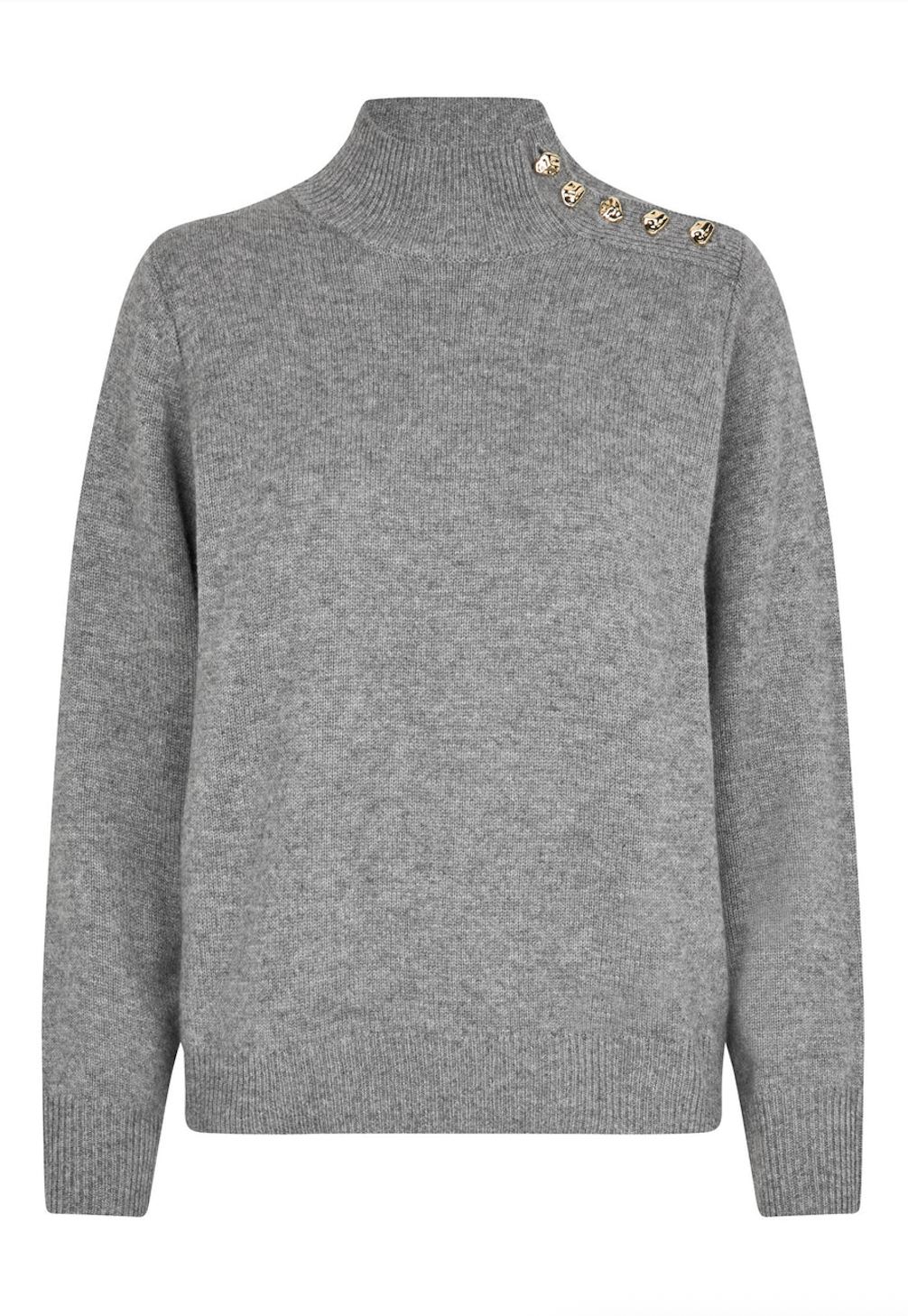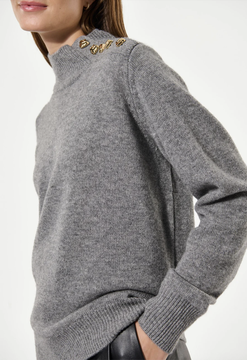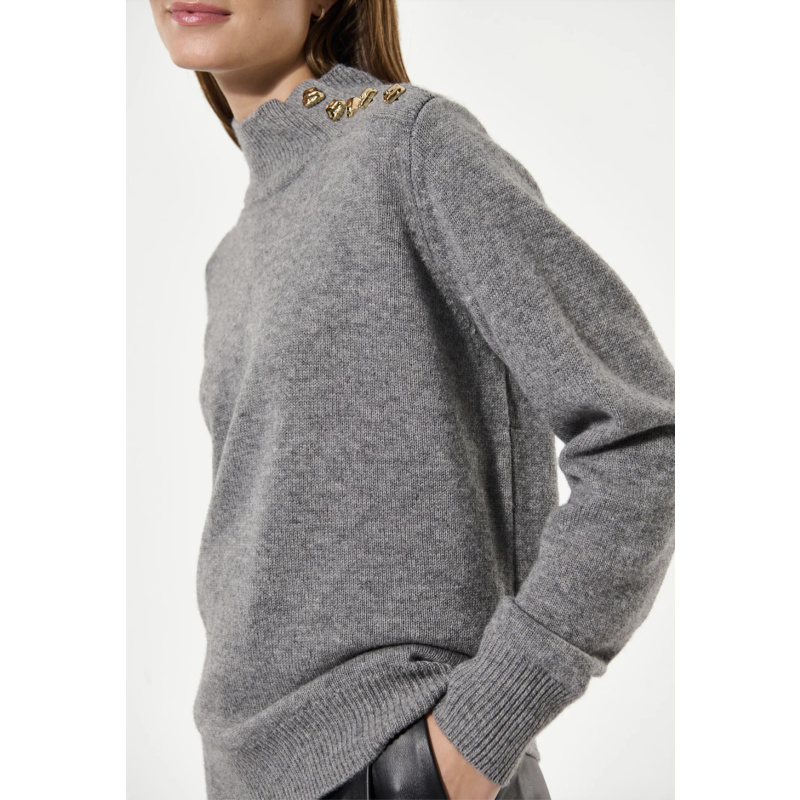 Myk kasjmirgenser fra Dea Kudibal. Genseren har en avslappet passform med høy hals. Den har dekorative messing knapper på skulderen og brede ribbekanter for en tidløs finish.