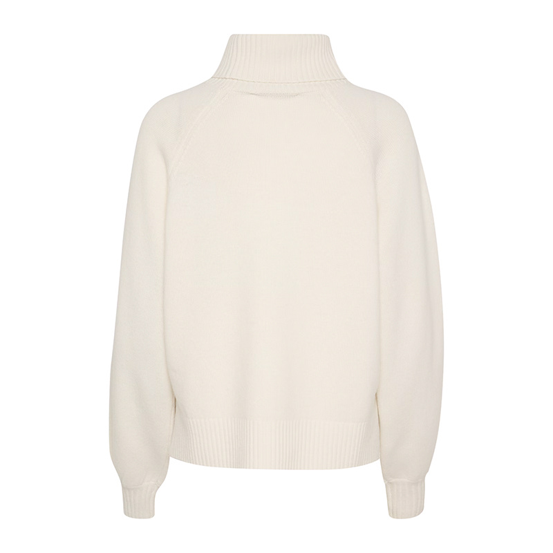 Alcor er en figurnær pologenser med elegante draperinger over brystet. Genseren er laget i en myk og elastisk viskose-ullblanding som