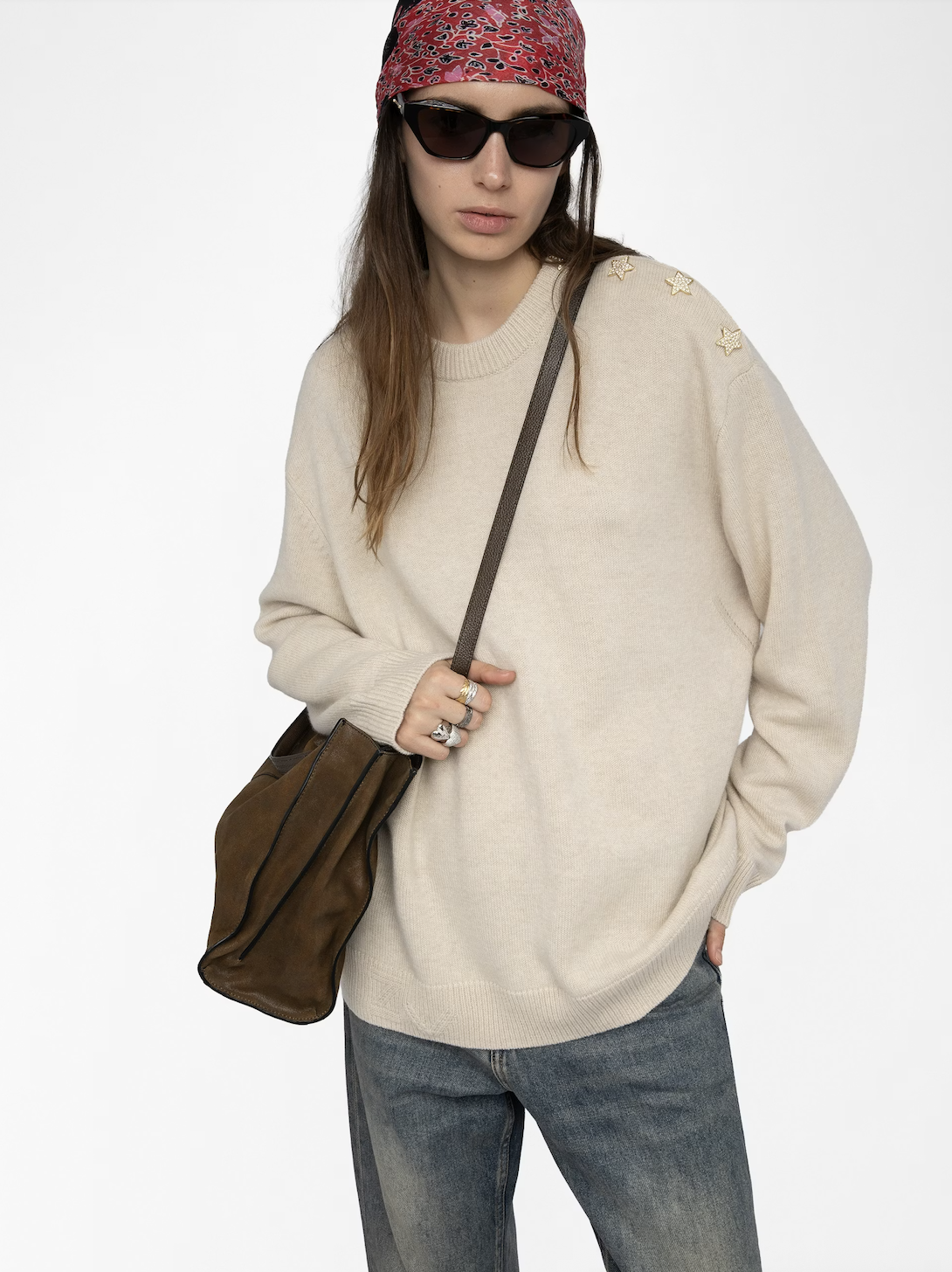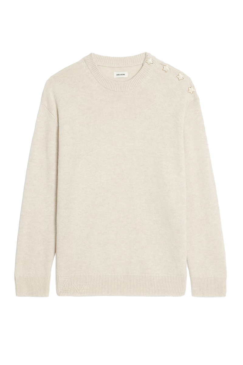 Swyna fra Zadig & Voltaire. Oversized genser med rund hals og smykkeknapper på skuldrene. Dette plagget har en løs passform. For en mer tettsittende look, anbefales det å gå i størrelse.