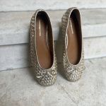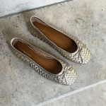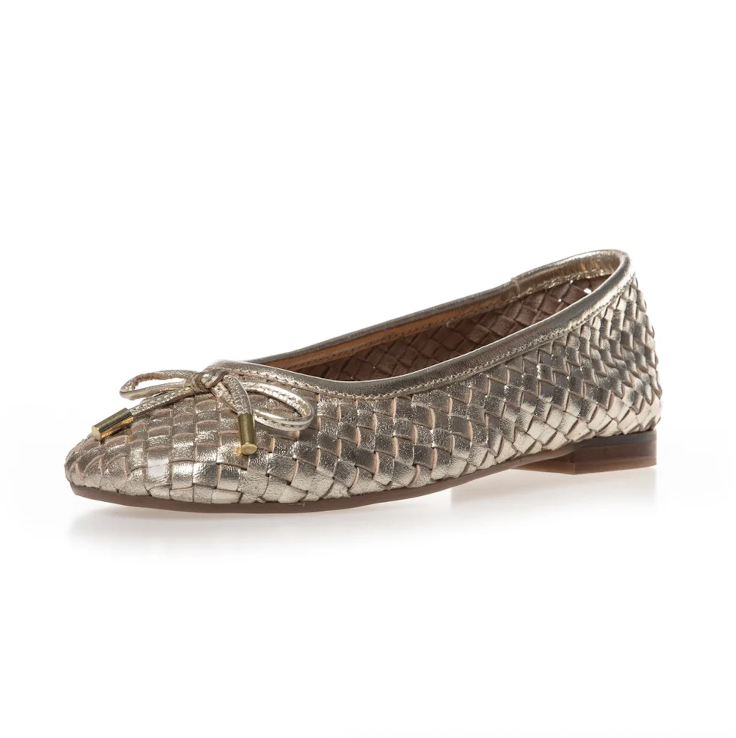 Lucie fra Copenhagen Shoes er en feminin ballerina i flettet skinn med et elegant, gyllent uttrykk som reflekterer lyset vakkert. Den luftige konstruksjonen gjør skoen perfekt for varme dager, mens sålen sikrer fleksibilitet og god støtte. Den myke Copenhagenshoes-sålen i skum gir ekstra komfort og gjør ballerinaen ideell til både hverdagsbruk og festlige anledninger