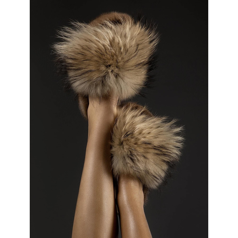 Nydelige sandaler fra Møller i skinn med pels fra finsk vaksebjørn. Møller kjøper inn sine materialer på autoriserte auksjoner i