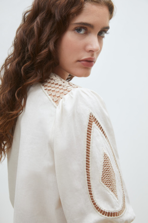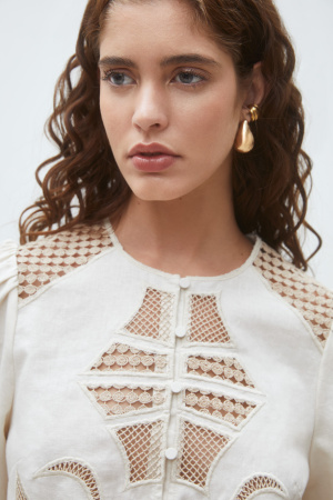 Lindsay fra Suncoo er en kortermet bluse med geometriske broderier. Blusen kommer i den sval linblanding og lukkes i front med knapper. Passer godt sammen med Brest Shorts fra samme kolleksjon for en komplett look til sommeren.