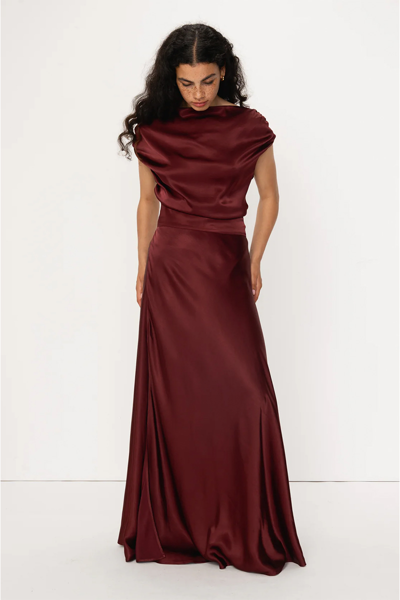 VIVEH Plum er en langermet versjon av vår bestselgende Giada. Det rynkete, off-the-skulder-snittet skaper en vakker omslag over brystet, noe