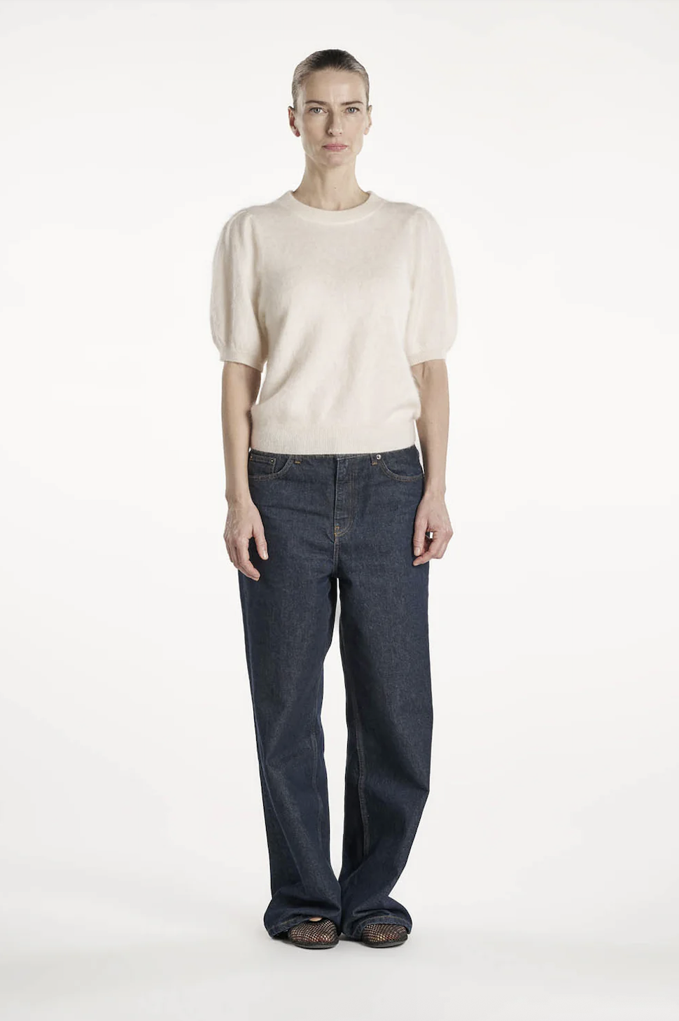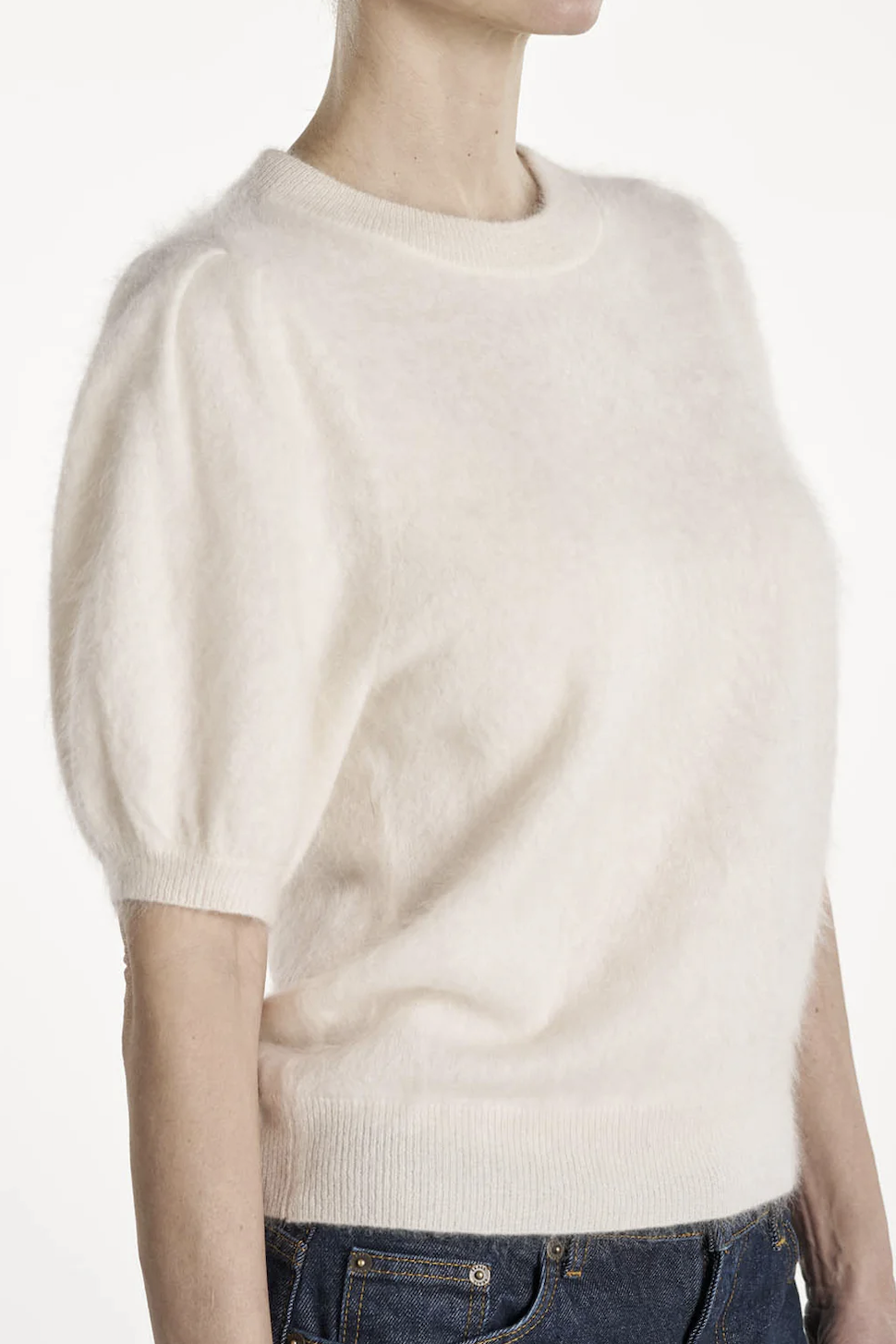 Pippi T-Shirt. Pippi T-Shirt er laget i 100 % børstet kasjmir og kombinerer myk luksus med et feminint preg. Den har små puff-ermer og en flatterende lengde som gir et elegant, eksklusivt utseende. En perfekt t-skjorte til både hverdagsbruk og mer formelle anledninger.