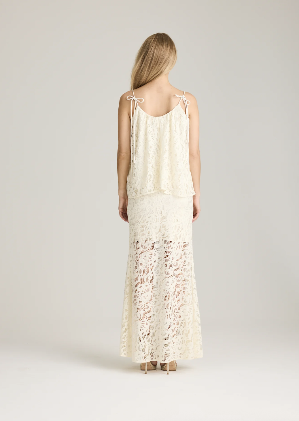 Sage Top. Sage Top fra Ravn ravn er en delikat blondetopp med en lett og myk passform som faller fint langs kroppen. Toppen har tynne justerbare stropper med en rund utringning både foran og bak.