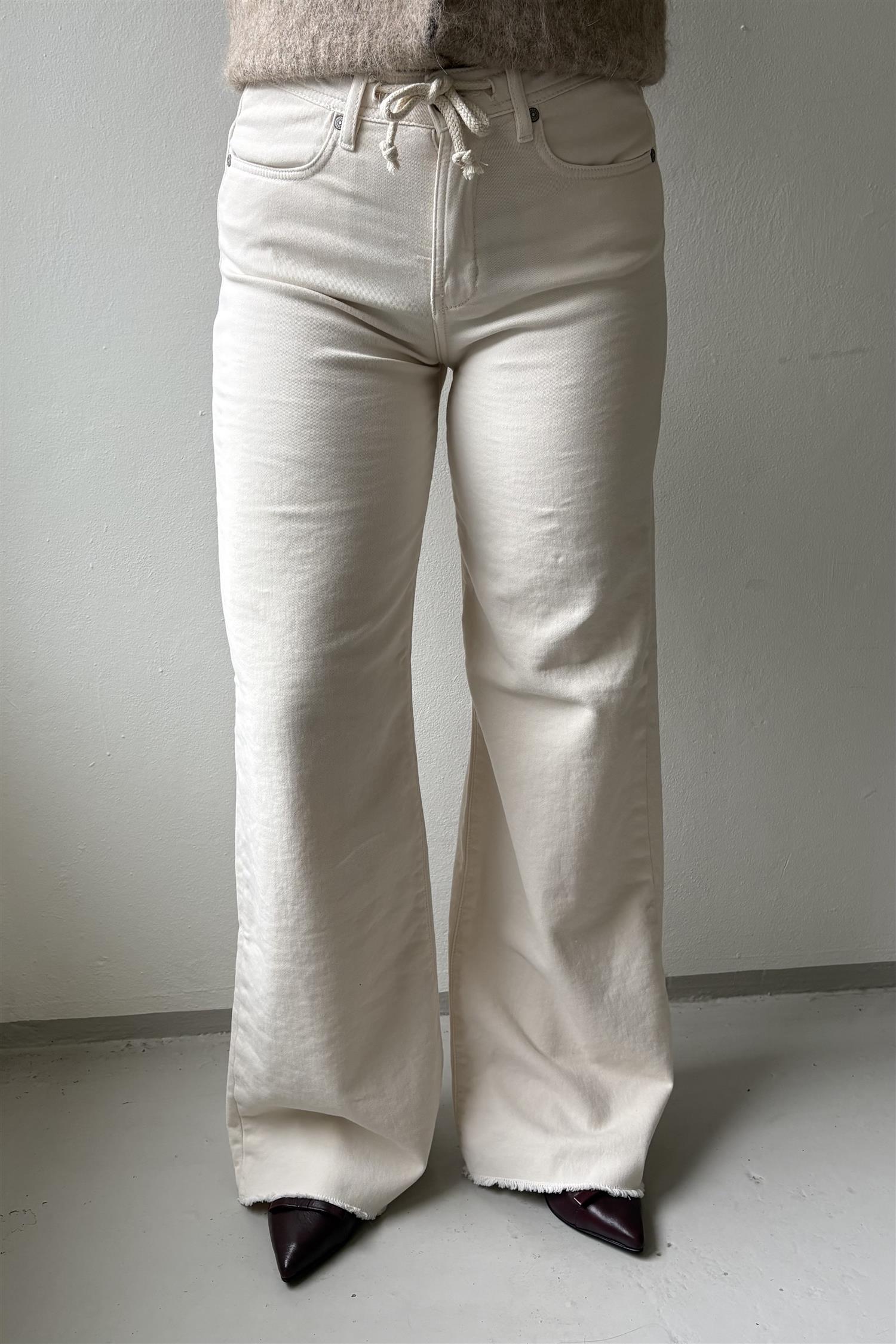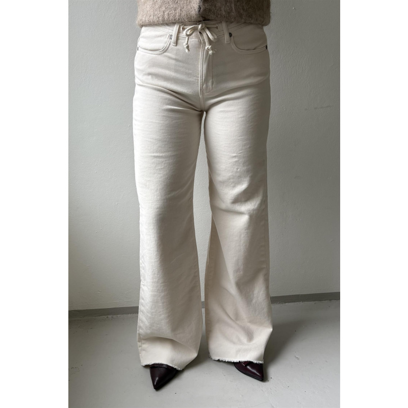 Antoine sporty er en myk og komfortabel bukse fra Denim Studio. Den har snøring i livet som kan knytes og en rå kant nederst.