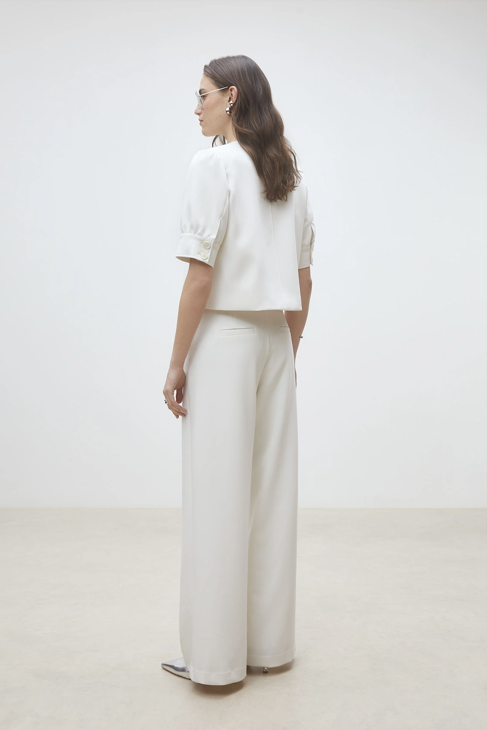 Jewel Pants. Jewel Pants fra Suncoo er en vid og lett flytende dressbukse med en elegant silhuett. Den lukkes med glidelås og hekter i livet for en ren og sofistikert finish. Buksen har praktiske sidelommer og vide ben som gir et moderne og komfortabelt uttrykk.