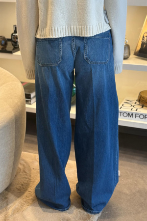 Elegante nålestripete jeans, designet med høy midje og vide ben. Disse jeansene har lommer foran og bak, og en av